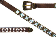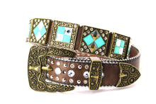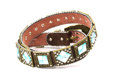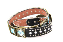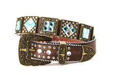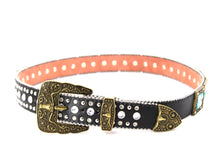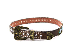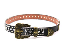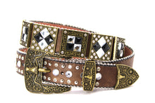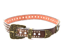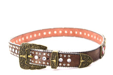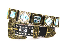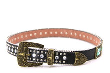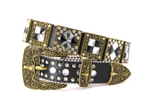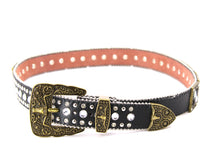 • Load image into Gallery viewer, Rhinestone Belt - #201 Brass Gold Longhorn Buckle w Big Rhinestone