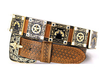 【SPECIAL DESIGN】- The western buckle is fixed by two screws on the back. So you can swap it with your own buckle if you like. The big rhinestones are fixed by screws as well. The stones are hand glued. It is a luxury 1lb handmade belt.