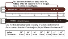 • Size: For belts size, our belts are measured from the belt fold to the central hole.